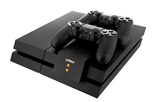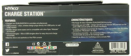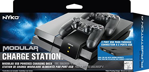 This Nyko Playstation4 Modular Charge Station is an easier way to charge DualShock4 controllers. The Modular Charge Station attached to the top of the PlayStation4 console and features two custom NiMH rechargeable batteries for easy drop and charge functionality. The Modular Charge Station is powered by the side USB port on the console, leaving all other ports open for use. While easily charging controllers, the Modular Charge Station also attaches to the top of the console, saving space and adapting to the PlayStation4 console decor.